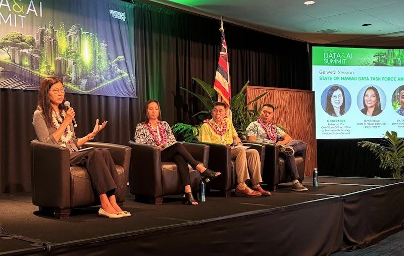 On May 14, 2025, the second annual Hawaiʻi Data and AI summit convened public sector staff along with industry experts from Google, Amazon, IBM, Salesforce, and other leading tech firms to explore how government can leverage data and AI for improved decision-making, efficiency, and delivery of services to the public. Hawaiʻi Data Collaborative’s Thomas Lee attended the summit as a member of the state’s Data Task Force, and sat as a panelist on the State of Hawaii Data Task Force and AI Guidelines Update general session.